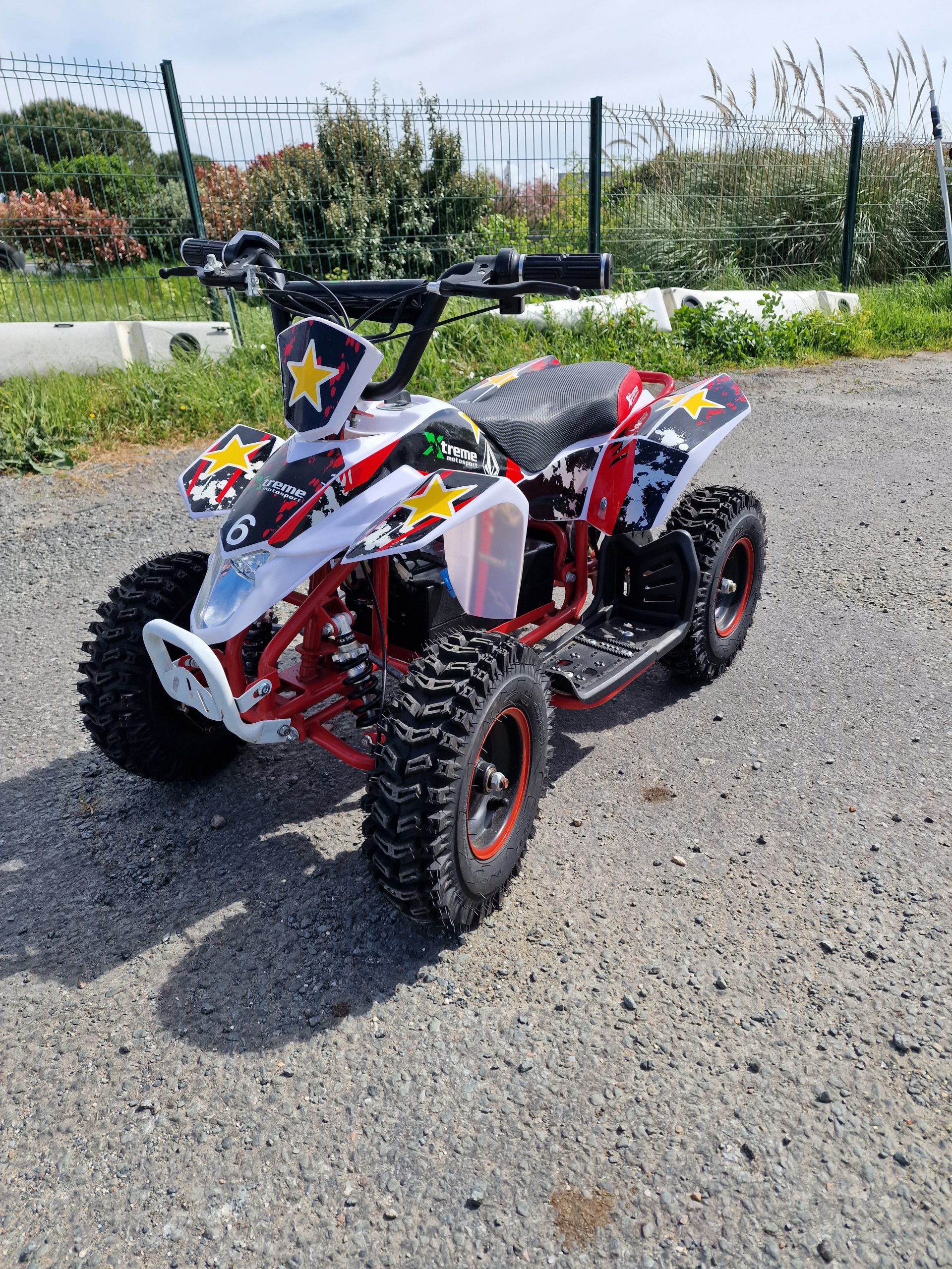 Quad électrique 1000W 48V – 6″ 3 Vitesses : 6-12-24km/h + Marche arrière Autonomie : 4 heures (en fonction du poids, de l’itinéraire et de la charge de la batterie) 1 place – temps de charge 4 – 5 heures